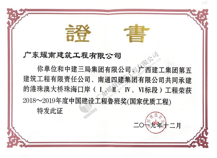 2019年12月10日,建筑業(yè)科技創(chuàng)新暨2018-2019年度中國(guó)建設(shè)工程魯班獎(jiǎng)(國(guó)家優(yōu)質(zhì)工程)表彰大會(huì)在北京舉行。住房和城鄉(xiāng)建設(shè)部、中國(guó)建筑業(yè)協(xié)會(huì)等來(lái)自各地區(qū)單位、部門(mén)以及有關(guān)行業(yè)的獲獎(jiǎng)企業(yè)代表等1600多人參加會(huì)議。來(lái)自開(kāi)平的建筑企業(yè)——廣東耀南建筑工程有限公司獲得此獎(jiǎng)項(xiàng),這是本公司第三次獲得這個(gè)獎(jiǎng)項(xiàng)。
